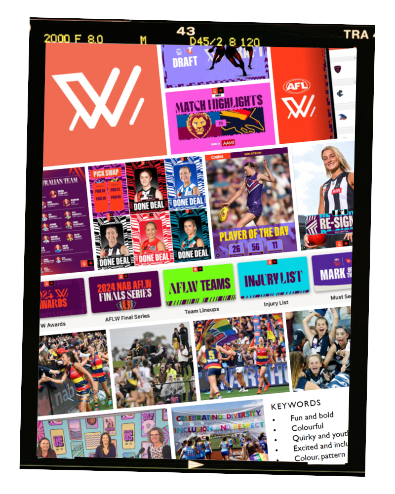 current AFLW logo + brand moodboard