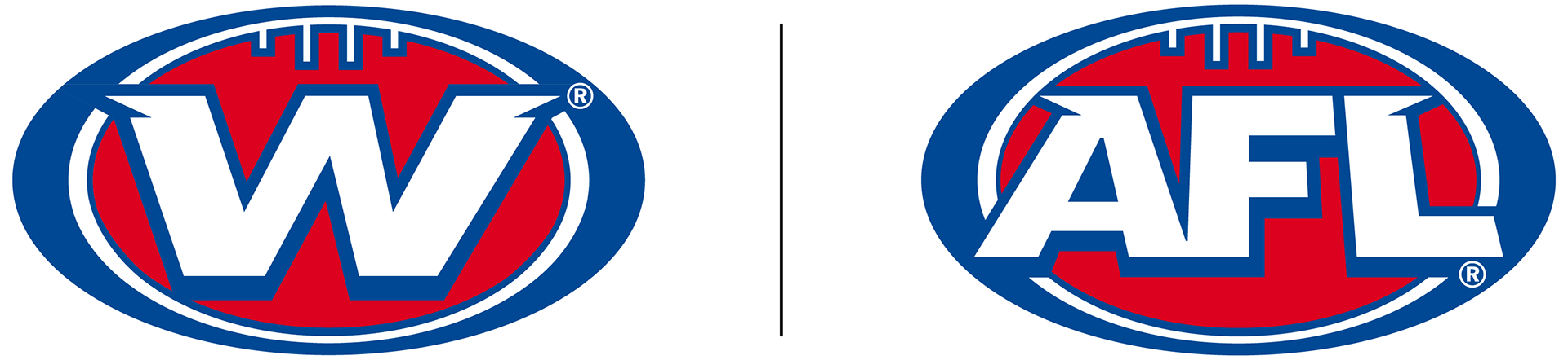 The logo type was replicated from the AFL logo and was developed by duplicating and rotating the original AFL ‘A’. This ensures the logotype shares the same character, slant, and serif style of the original inspiration. The letterform is bold and unapologetic, with a simple ‘W’ filling the entire ellipse container. The heavy weight strokes communicate strength and stability, while the slight right shear of the letterform increases dynamics, hinting towards progressive movement. The navy drop shadow follows the style of the AFL logo, and reiterates the strength and weight of the letterform. The navy strokes throughout aid in legibility at all scales by providing sufficient contrast and dimension. The ellipse container has remained identical to the AFL logo to aid in brand unity and recognition. Further, the brand colours have been retained to reiterate the national nature of the competition, lending credibility and impact to the AFLW brand.
